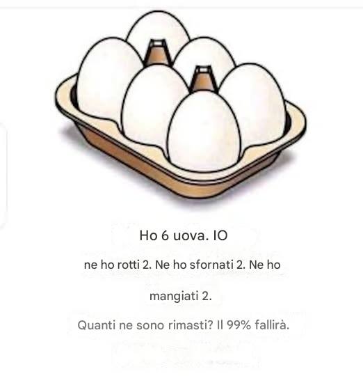 “Ho 6 uova. Ne ho rotti due. Ne ho sfornati 2. Ne ho mangiati 2. Quanti ne sono rimasti? »